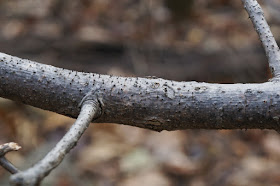 I grabbed this branch for blance when we were descending off of the ridge. It turned out to be covered with tiny prickly things. I have no idea what the branch is or if the prickly spikes are thorns or some kind of parasite.